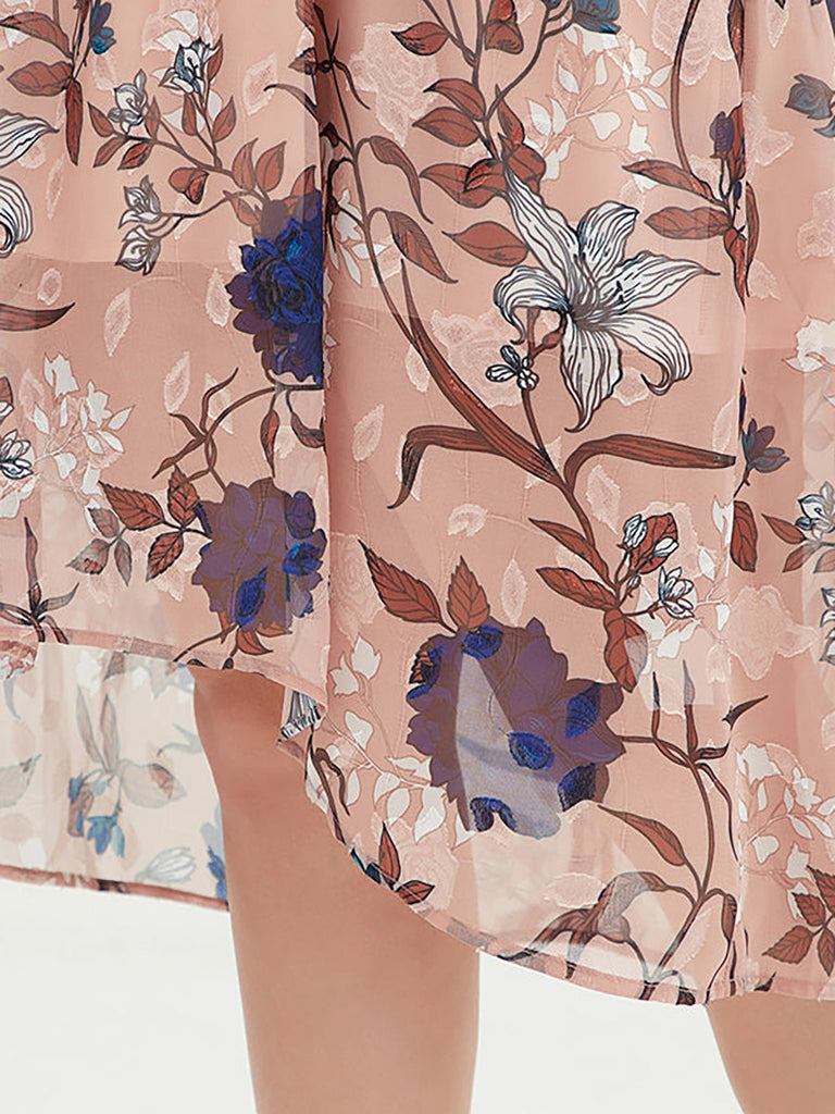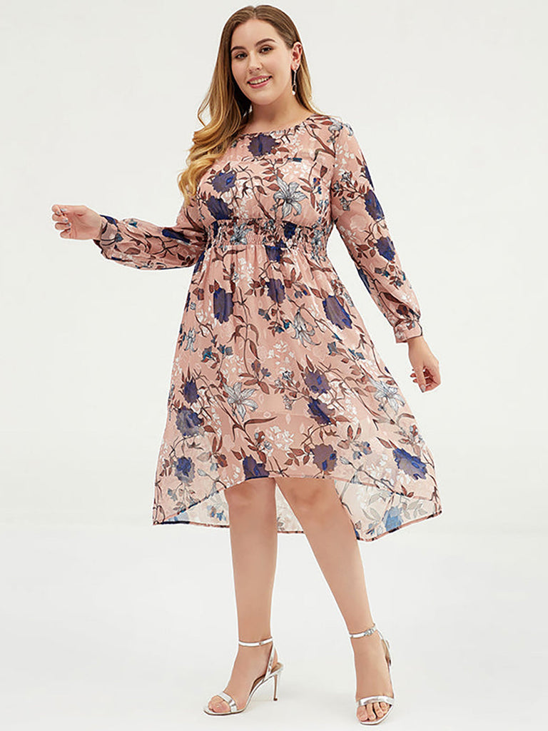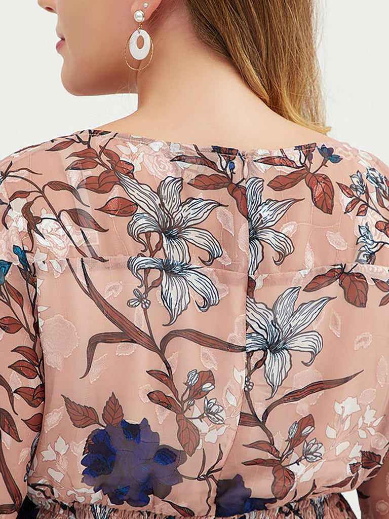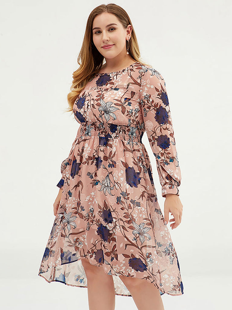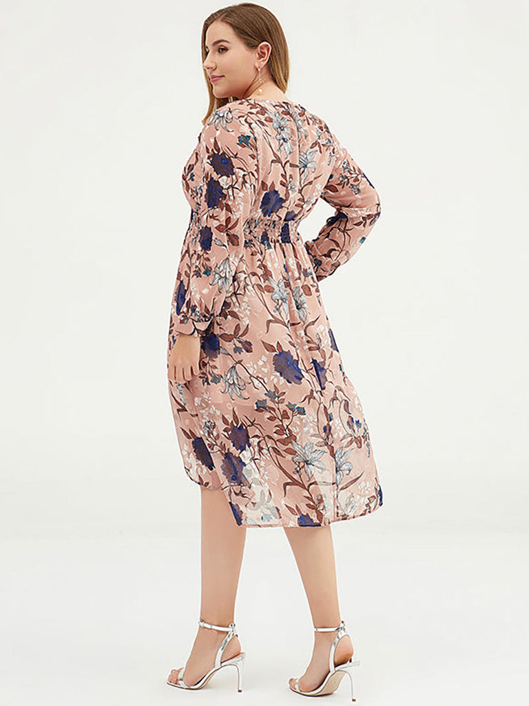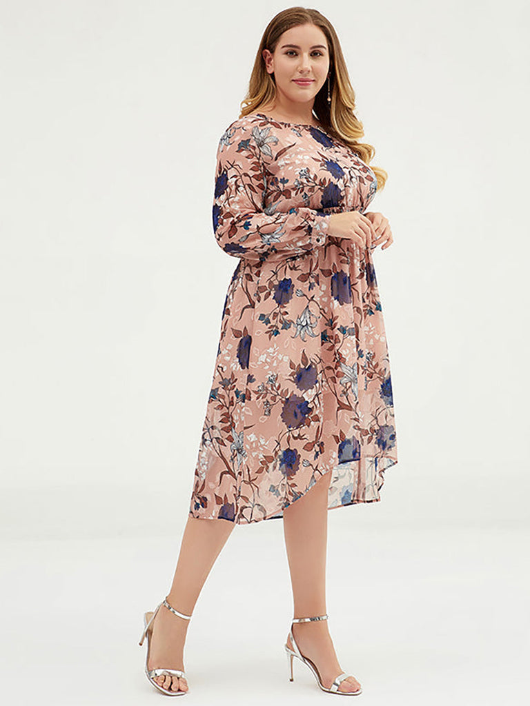 Plus Size Women Floral Chiffon Midi Dress With Belt